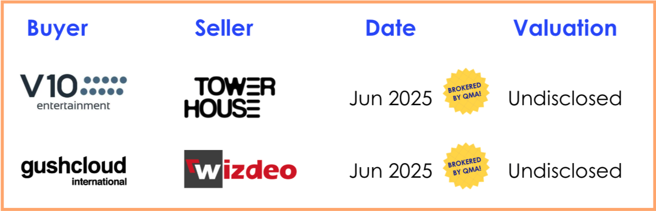 Software companies are most in demand, accounting for over a quarter of all H1 2025 transactions. Media properties, agencies, and talent management firms are also highly sought, given continued consolidation in each of those categories.