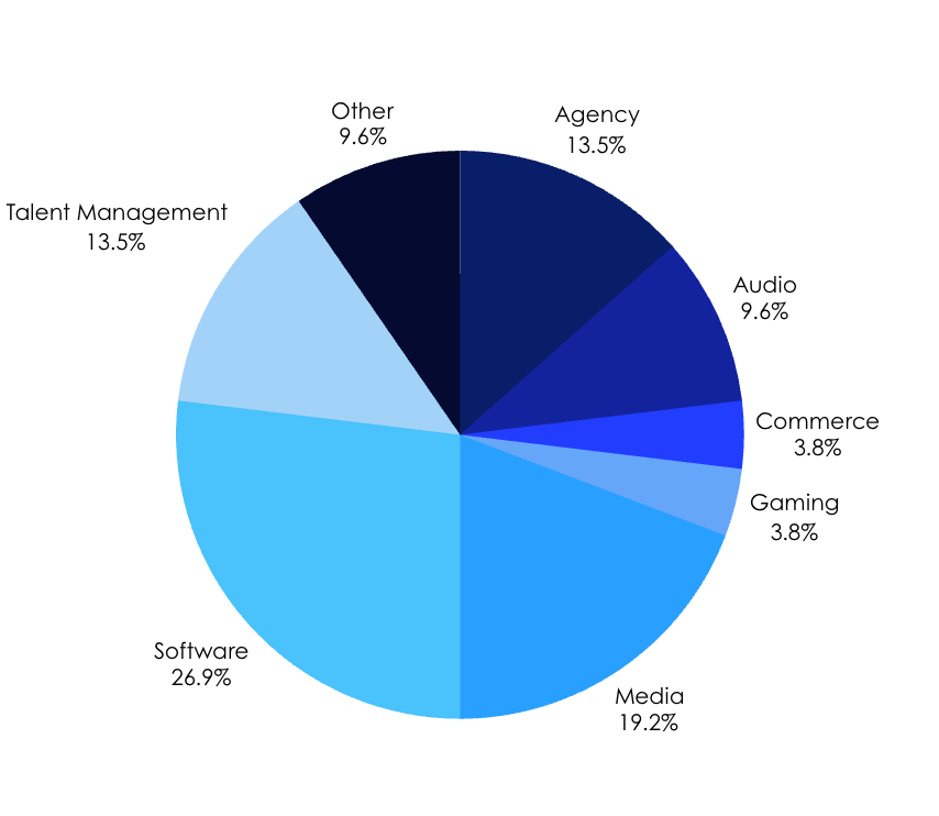 Sector Focus: Primary acquisition targets include software (27%), media companies (19%), agencies (14%), and talent management firms (14%).