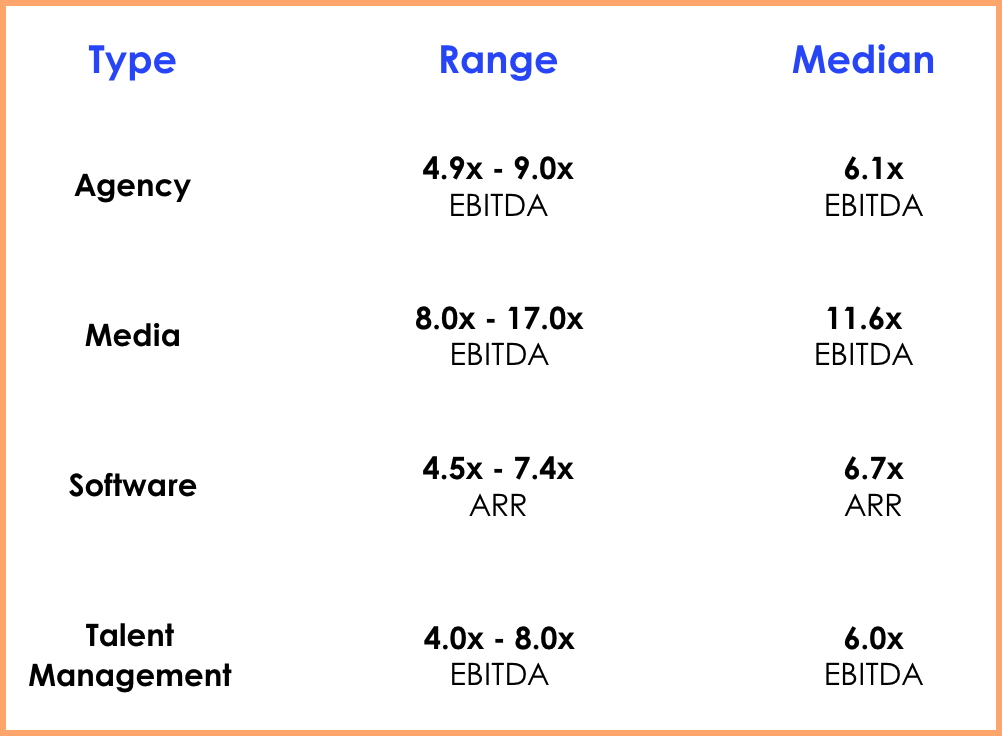 Valuation Range: Most creator economy companies are valued at 5x - 8x EBITDA.