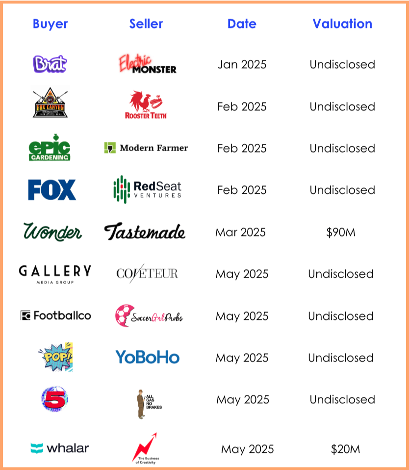 Buyers remain interested in media properties, including digital publishers, short-form video studios, and creator media companies.