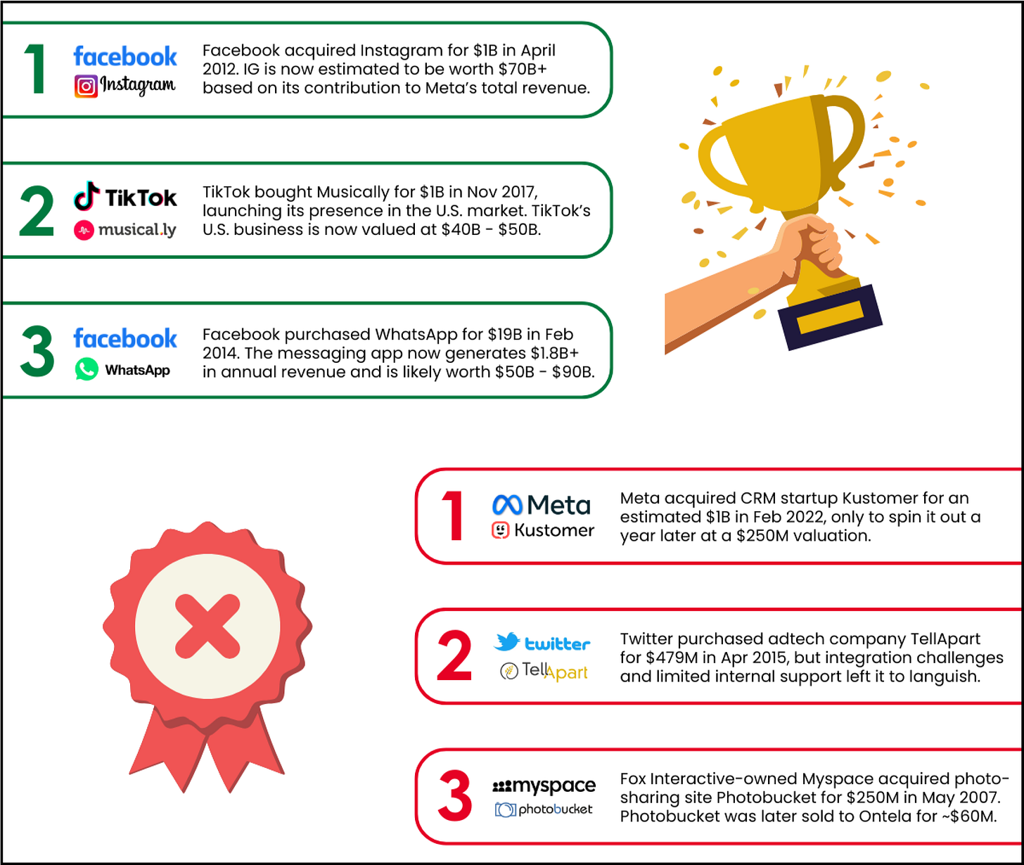 Regulatory pressure and antitrust scrutiny of Big Tech has made some acquisitions harder to justify and slower to approve. For example, Meta’s attempted purchase of Giphy faced pushback in both the U.S. and U.K., setting a precedent for future deals.