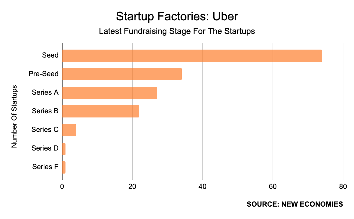 Of the 180+ startups founded by former Uber employees that have raised at least $500K, most are at the Seed stage. Early signs indicate that some are successfully advancing to Series A and beyond.