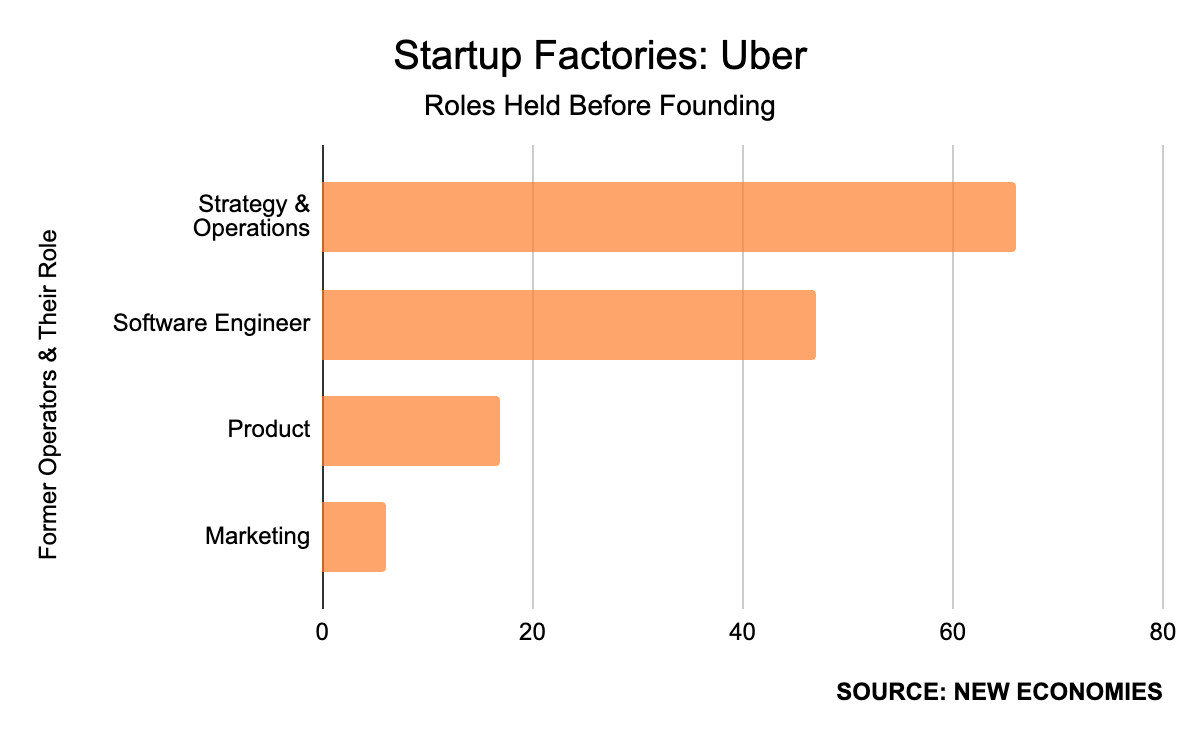 What’s interesting about Uber—compared to other Startup Factories we’ve covered, such as Palantir, NVIDIA, LinkedIn, and Stripe—is that most founders come from strategy and operations roles, rather than software engineering.