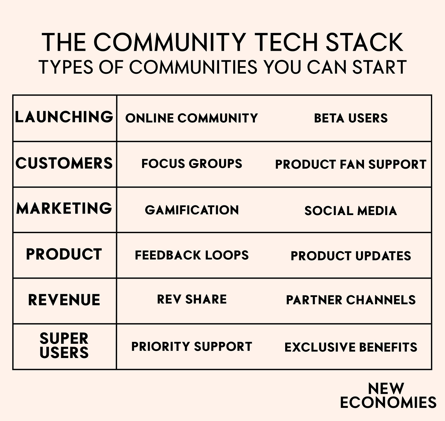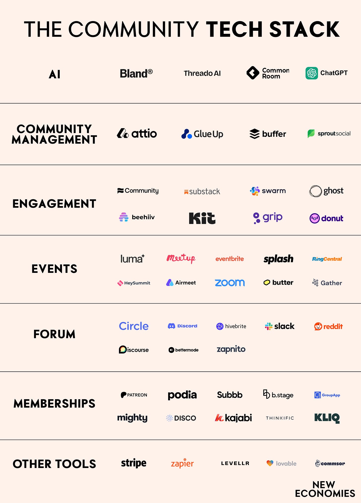 To help you along your community journey, we have mapped out the most promising tools to help you succeed, organized into the following categories: