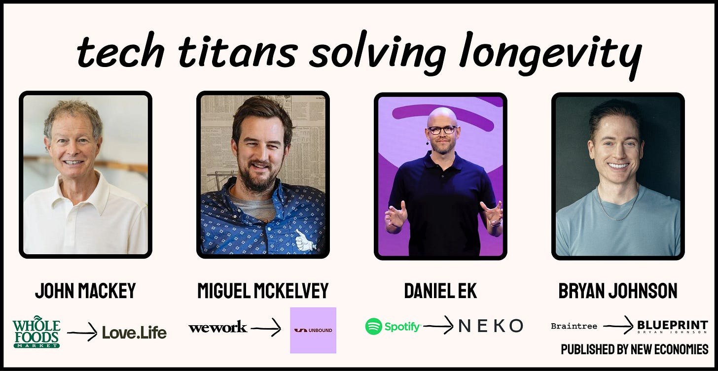 Some of the most compelling examples of iconic founders now building in the longevity space include: