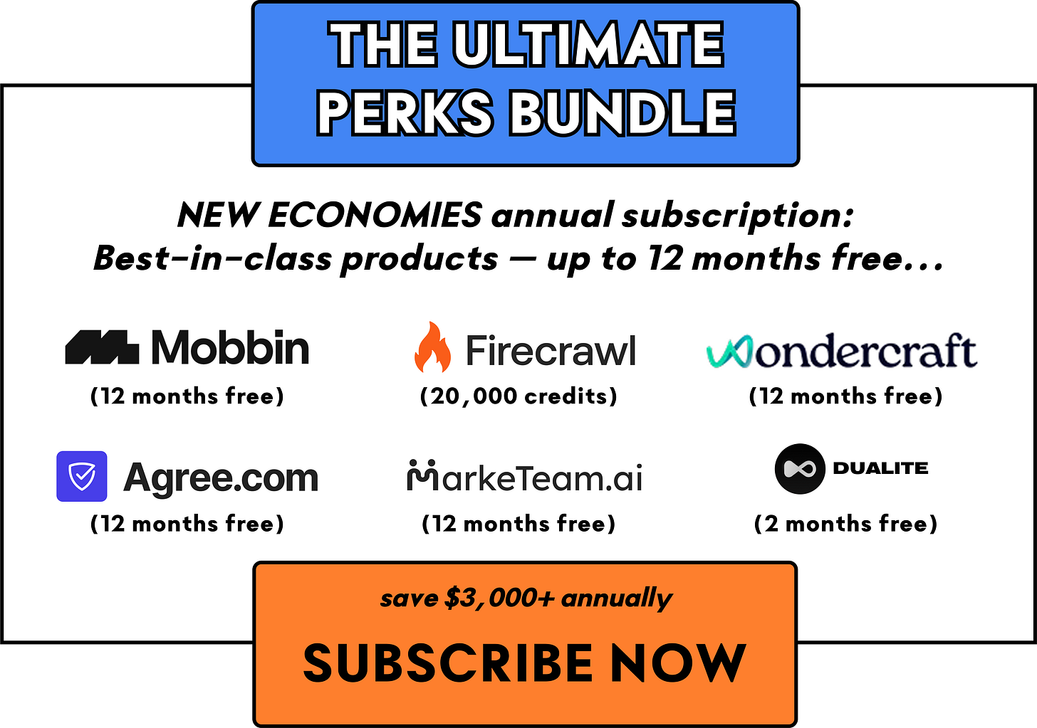 We’ve just launched the ultimate perks bundle — giving you free access to best-in-class tools with your annual NEW ECONOMIES subscription. And we’re just getting started: expect even more, even better discounts over time. What’s included so far?