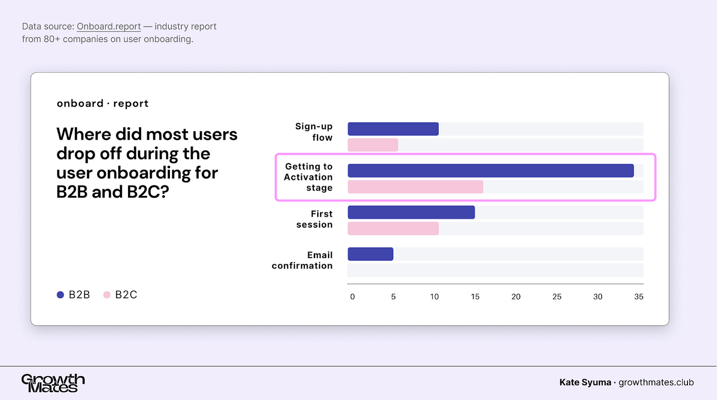 Activation is where growth either begins — or quietly dies. It’s not a single event, but a journey: from the moment a user searches for a solution, to when they build a habit around your product. Across 80+ onboarding flows we reviewed, one truth kept showing up: most users drop off before they ever reach core value (=getting to the Activation stage).