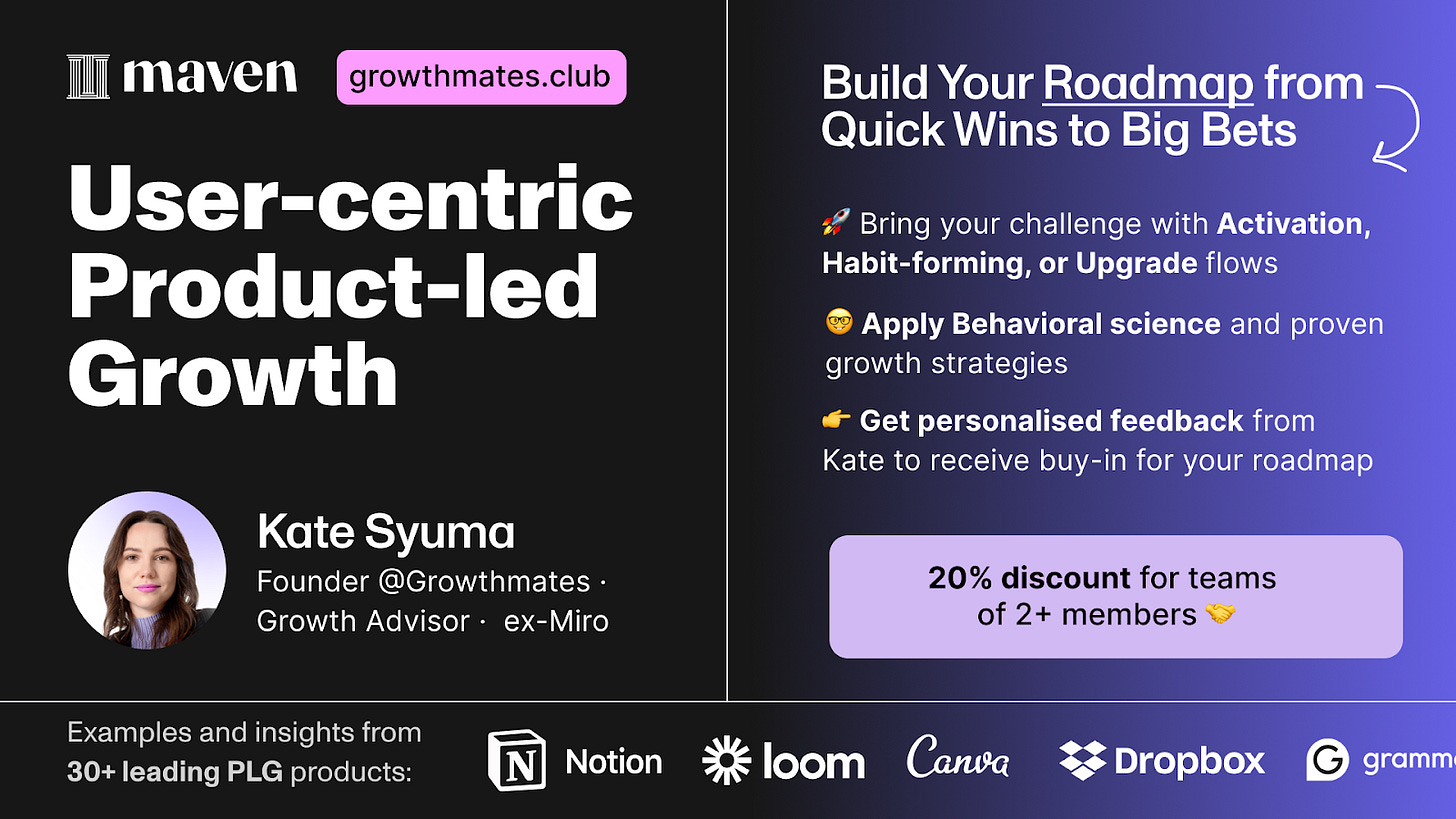 🔗 Growthmates.club — Explore ways to work together, whether you're looking for a dedicated PLG Advisor or want to run an Onboarding & Activation Sprint to get my fresh perspective, uncover new growth opportunities, and holistic product improvements.