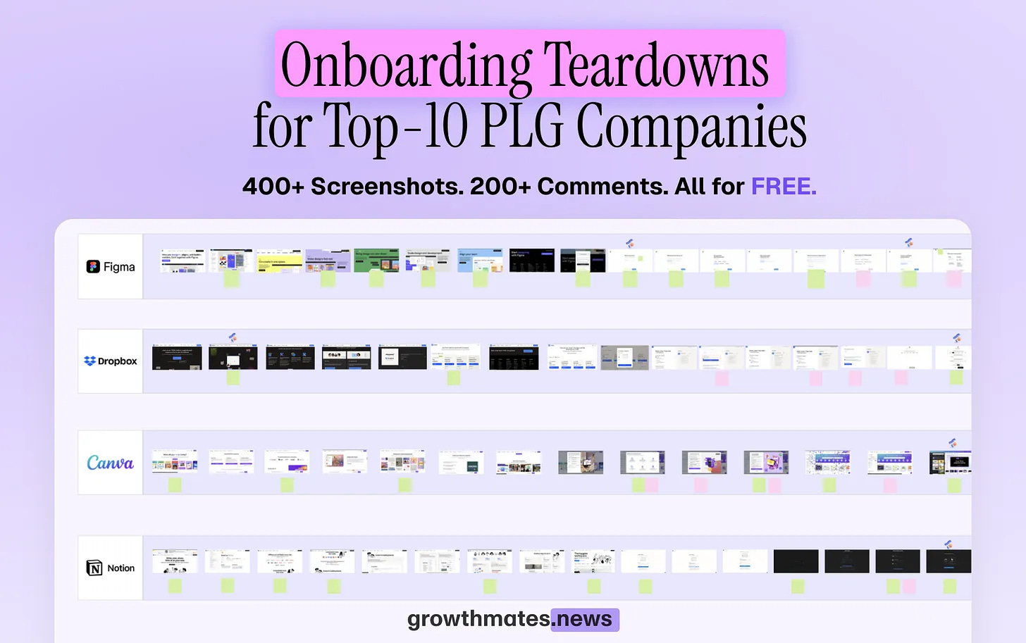 After years of running onboarding experiments at Miro and advising top SaaS teams, I pulled together everything I’ve learned into one resource: 10 Onboarding Teardowns from top PLG products — now public for the first time.