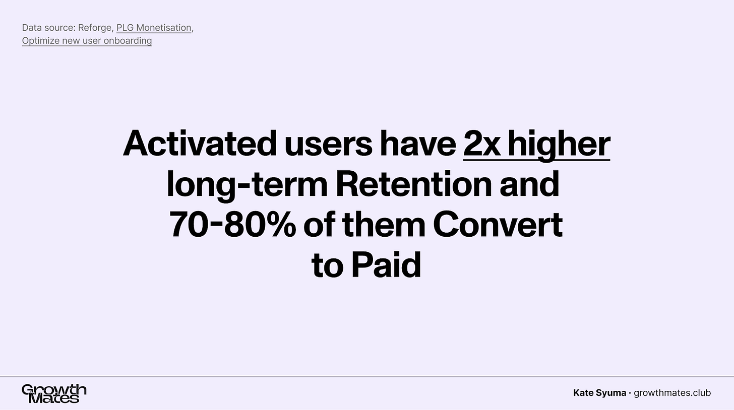 Activated users aren’t just more engaged — they’re significantly more valuable. Data shows that activated users have 2x higher long-term retention and are 70–80% more likely to convert to paid. That’s why Activation isn’t just a UX challenge — it’s a growth multiplier. The earlier users experience core value, the stronger their path to habit, retention, and monetization.