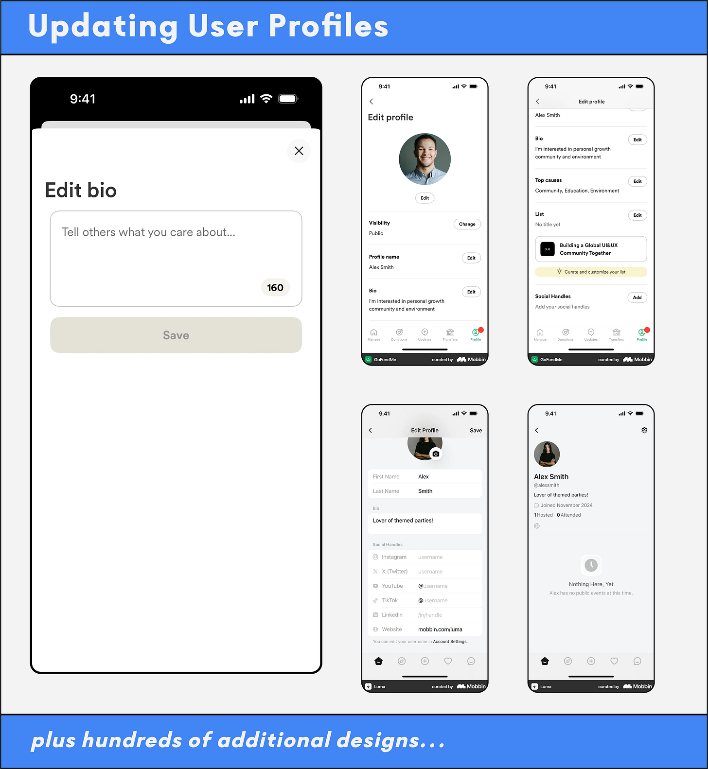 For consumer apps, profile updates are a key part of the user experience. In this section, you’ll find design examples to help you:
