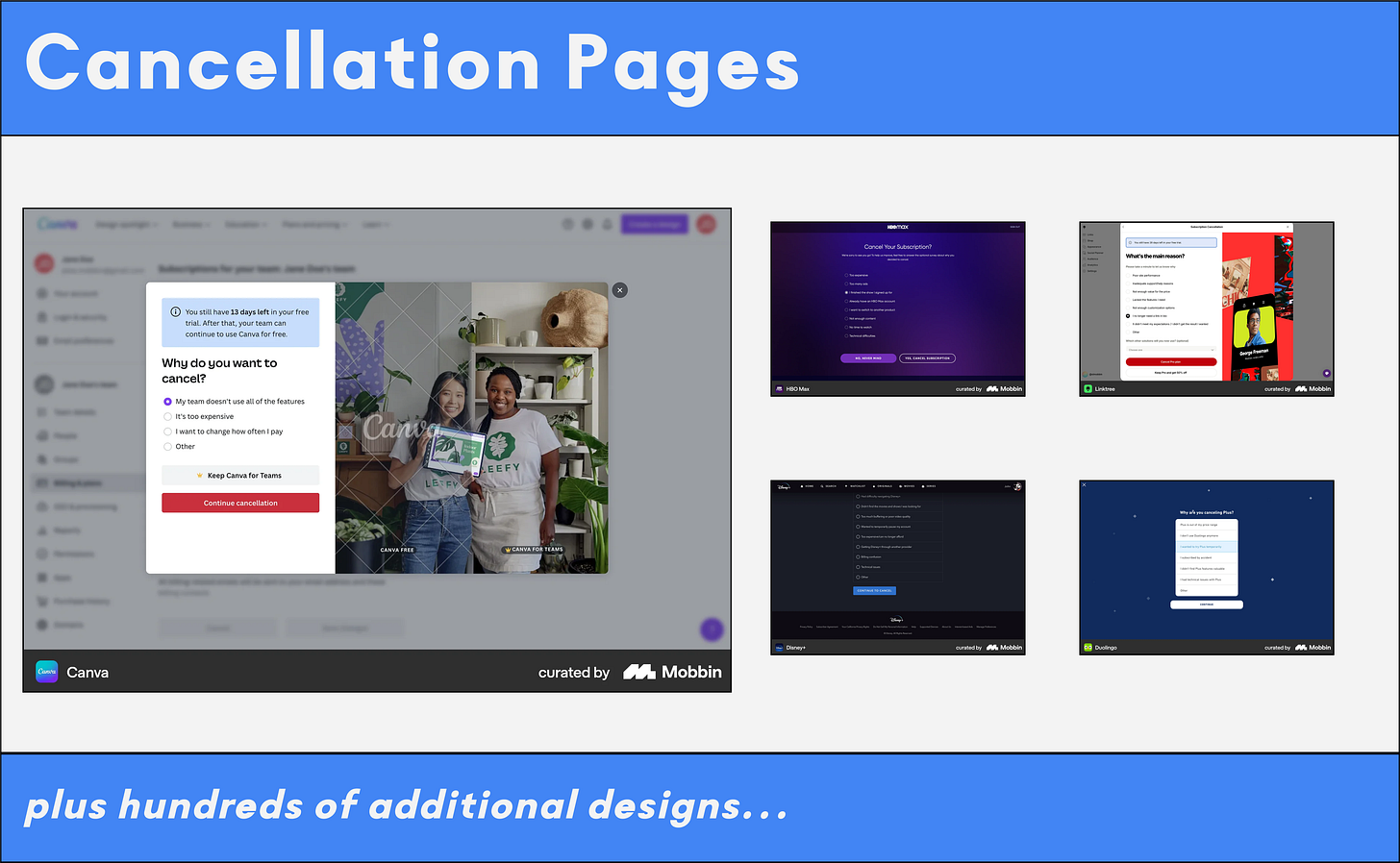 Cancellations are part of every subscription business — but the experience still matters. Done well, it leaves users with a positive impression and valuable feedback. In this section, explore designs that show how to: