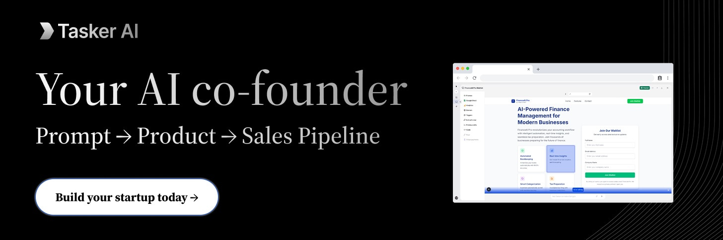 Whether you’re testing an MVP, validating pricing, or spinning up side projects, Tasker helps you ship smarter and faster to get from 0-1.