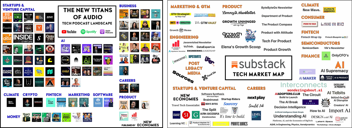 NEW ECONOMIES recently published two pieces on this growing trend: directing attention through new media - specifically the rising influence of technology podcasts and the surge in popularity of Substack newsletters. You can discover hundreds of new media creators here.
