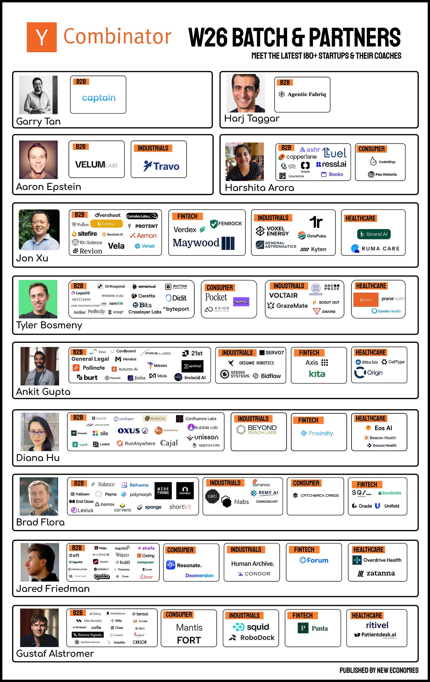 Much of the attention goes on the startups throughout YC batches but let’s not forget the coaches (Partners) who are supporting each startup as well. We’ve outlined below each YC Partner, and which startups they have coached throughout this batch.